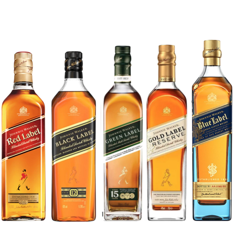 Black Label: Malt whisky, destilado alcoólico simples de cereais envelhecidos, água e corante caramelo.