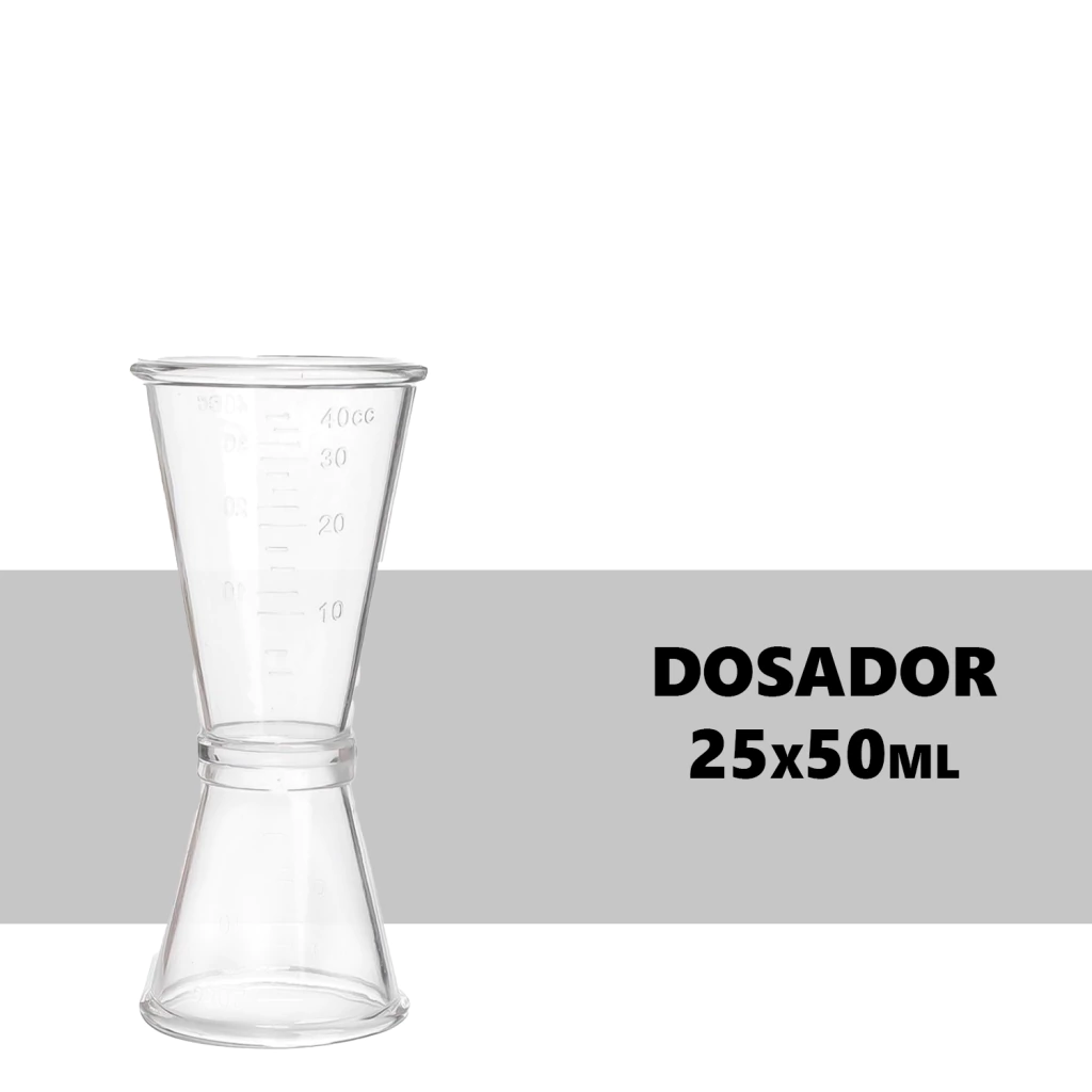 O Dosador de Policarbonato Duplo Americano 25 x 50ml é ideal para bartenders e amantes de coquetelaria que buscam praticidade e precisão no preparo de drinks. Com marcações visíveis e fácil de manusear, proporciona medidas exatas para suas receitas, sendo resistente e durável, perfeito para uso profissional ou doméstico.
