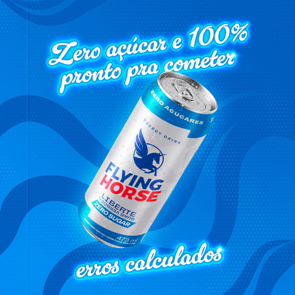Item da Embalagem: 12 unidades - Energético Flying Horse Energy Drink Zero 473ml