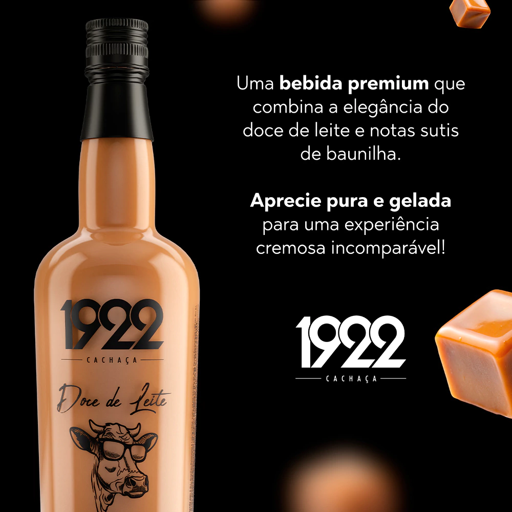 Licor de Doce de Leite 1922 700ml é uma bebida cremosa e deliciosa, com um toque especial de baunilha. Ideal para ser consumido puro ou em drinks criativos, harmoniza bem com sobremesas à base de frutas, café expresso e combinações com morango e pitanga.