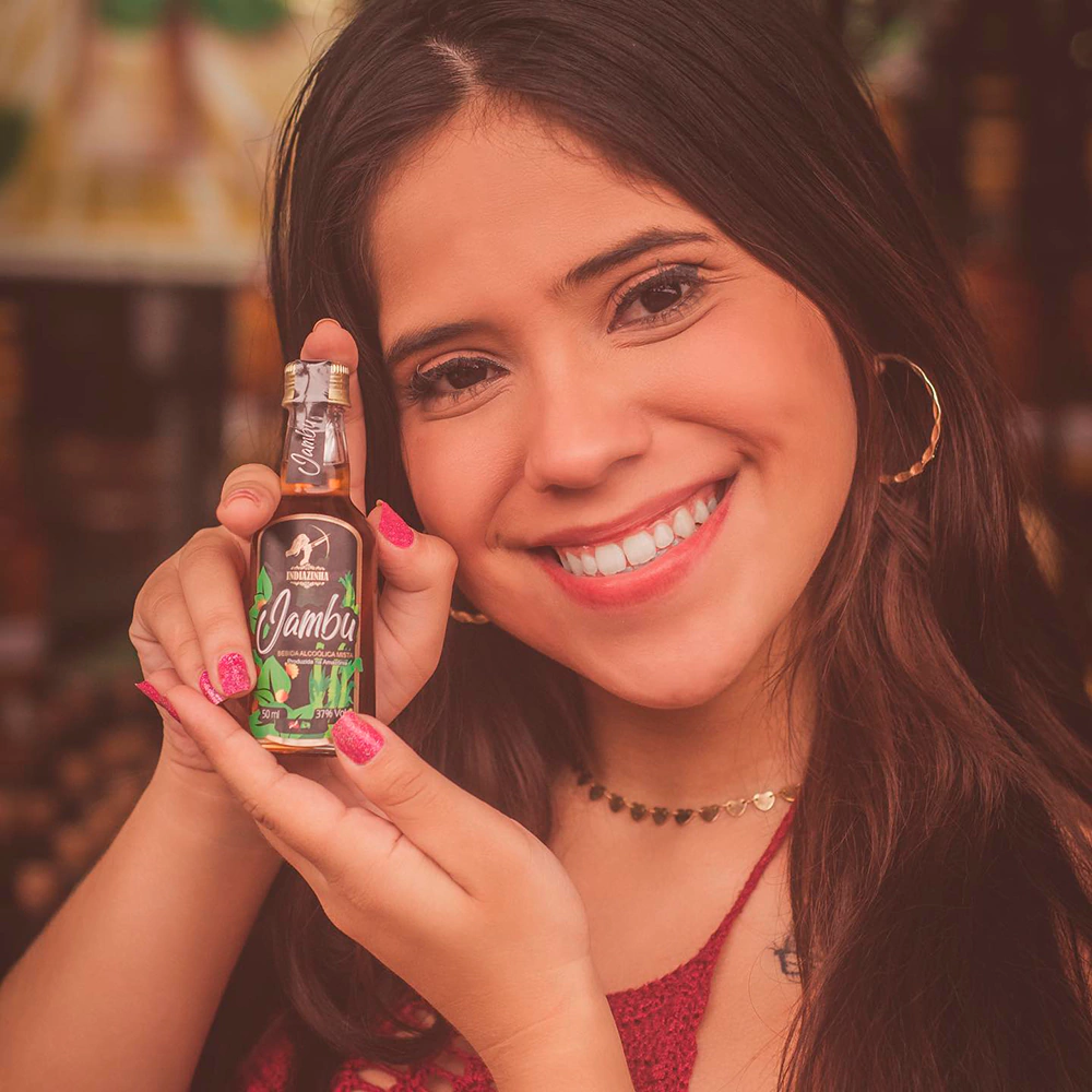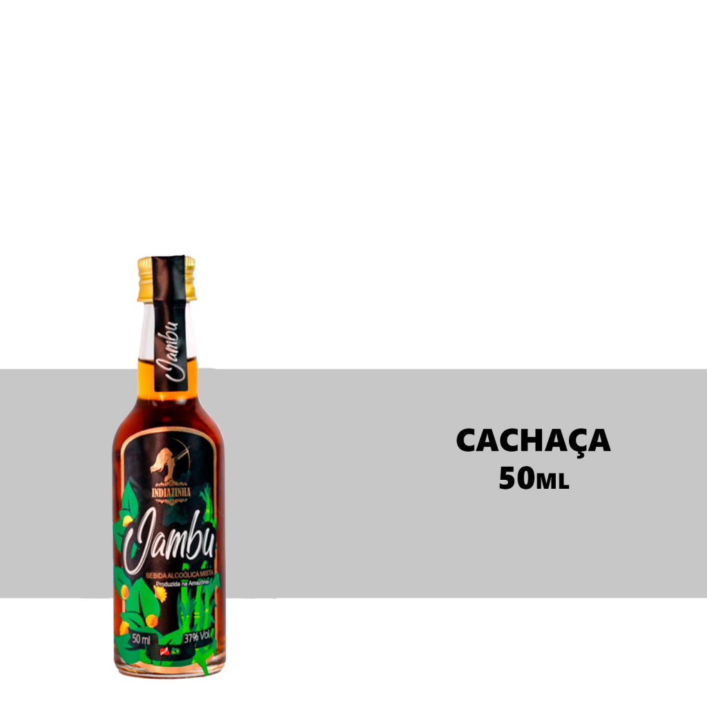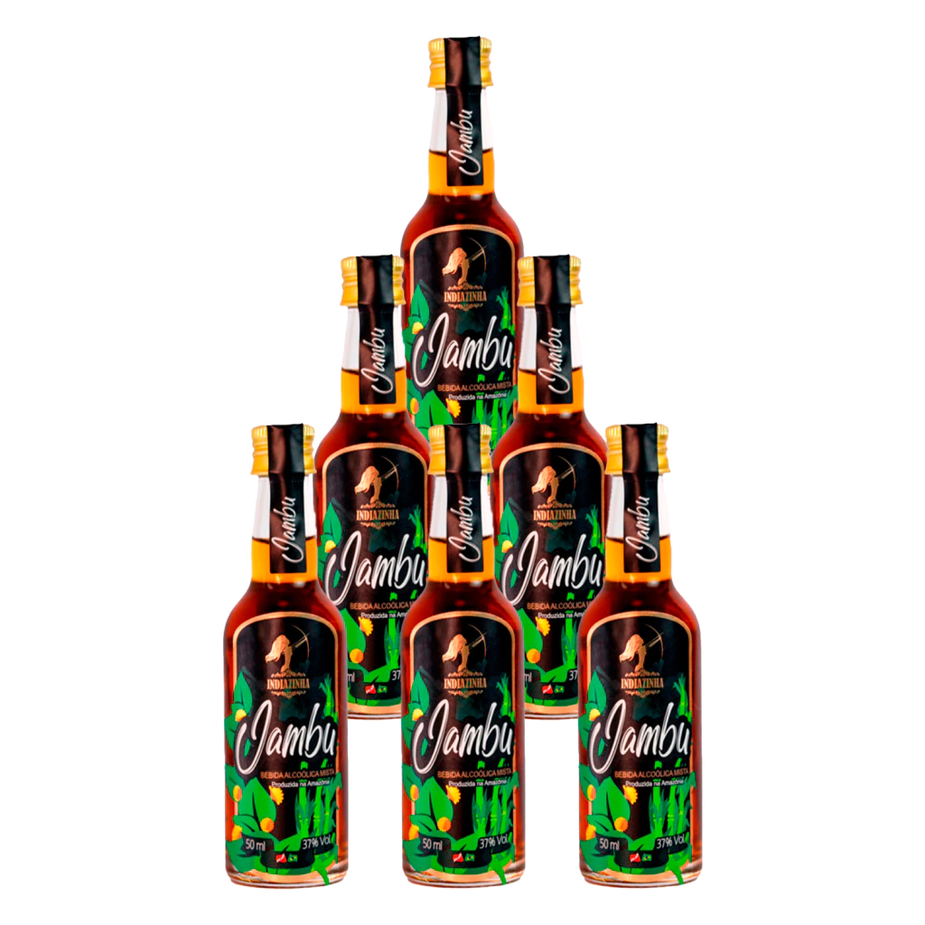 Item da embalagem: 6 unidades - Miniatura Cachaça Mista de Jambu Indiazinha 50ml