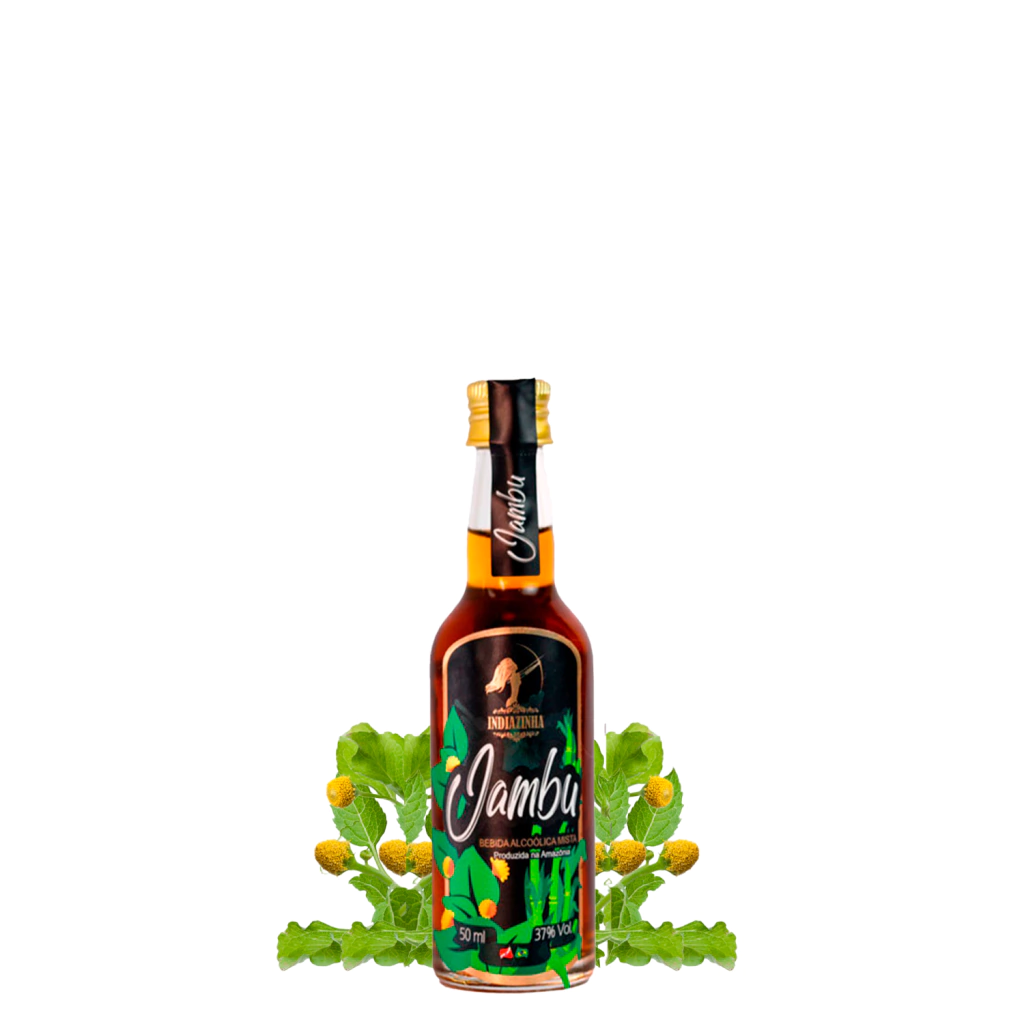 Ingredientes: Cachaça, extrato de jambu, extrato de guaraná e açúcar.