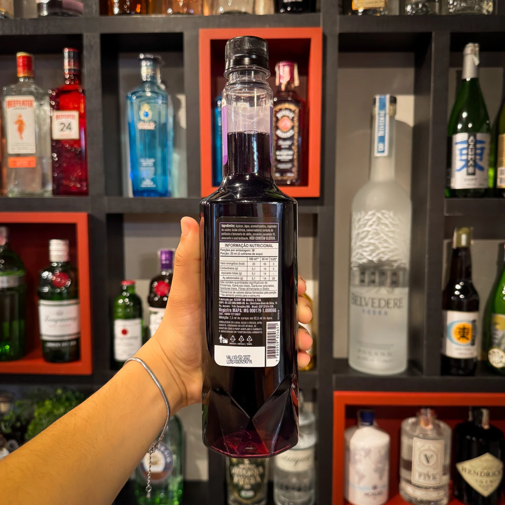Ingredientes: Açúcar, água, aromatizantes, regulador de acidez ácido cítrico, conservadores sorbato de potássio e benzoato de sódio, corantes caramelo IV, amaranto e azul brilhante.
